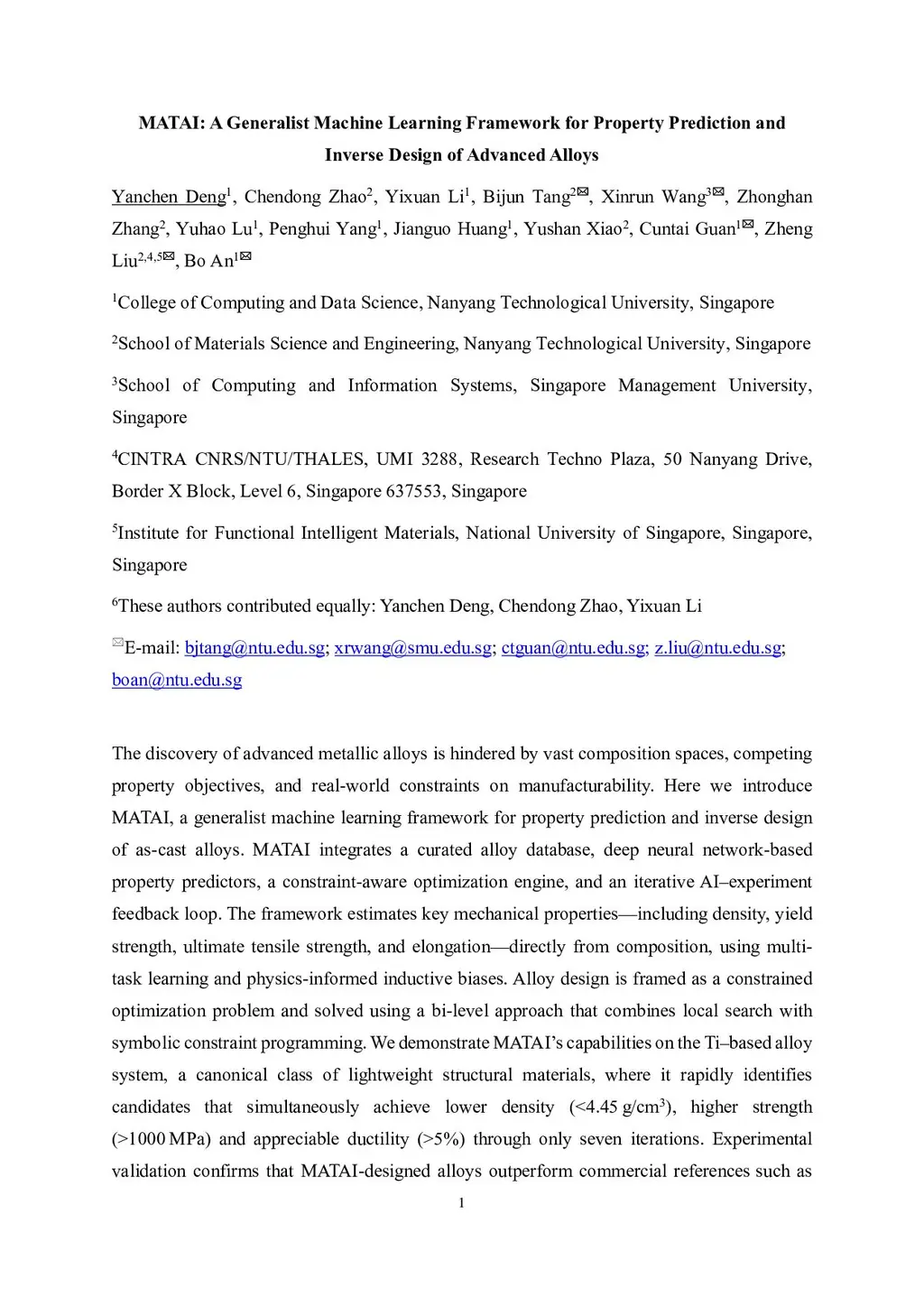 MATAI: A Generalist Machine Learning Framework for Property Prediction and Inverse Design of Advanced Alloys