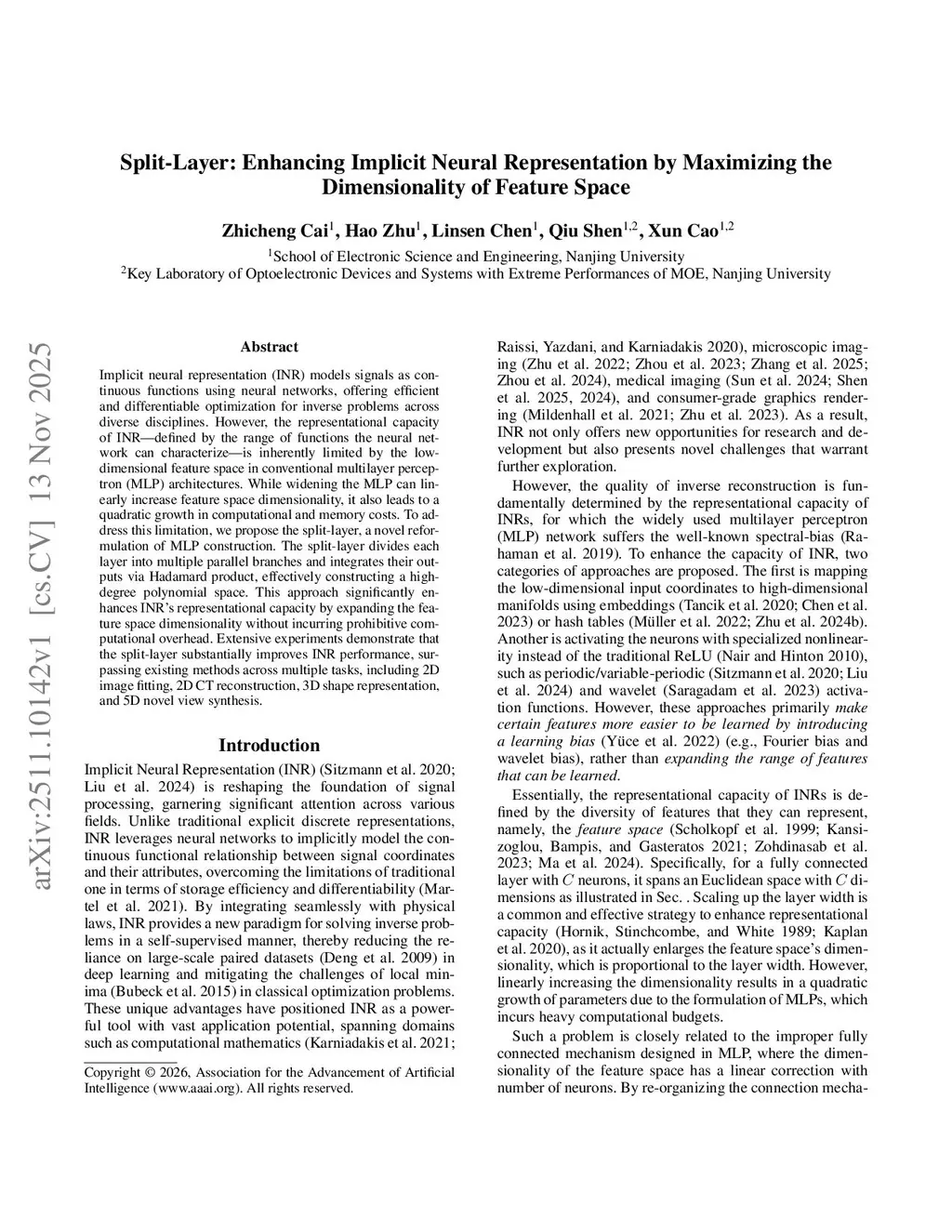 Split-Layer: Enhancing Implicit Neural Representation by Maximizing the Dimensionality of Feature Space