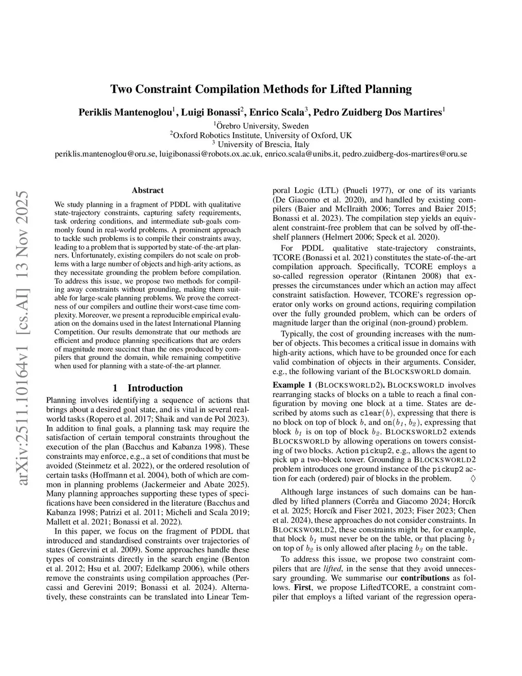 We study planning in a fragment of PDDL with qualitative state-trajectory constraints, capturing safety requirements, task ordering conditions, and intermediate sub-goals commonly found in real-world problems. A prominent approach to tackle such problems is to compile their constraints away, leading to a problem that is supported by state-of-the-art planners. Unfortunately, existing compilers do not scale on problems with a large number of objects and high-arity actions, as they necessitate grounding the problem before compilation. To address this issue, we propose two methods for compiling away constraints without grounding, making them suitable for large-scale planning problems. We prove the correctness of our compilers and outline their worst-case time complexity. Moreover, we present a reproducible empirical evaluation on the domains used in the latest International Planning Competition. Our results demonstrate that our methods are efficient and produce planning specifications that are orders of magnitude more succinct than the ones produced by compilers that ground the domain, while remaining competitive when used for planning with a state-of-the-art planner.