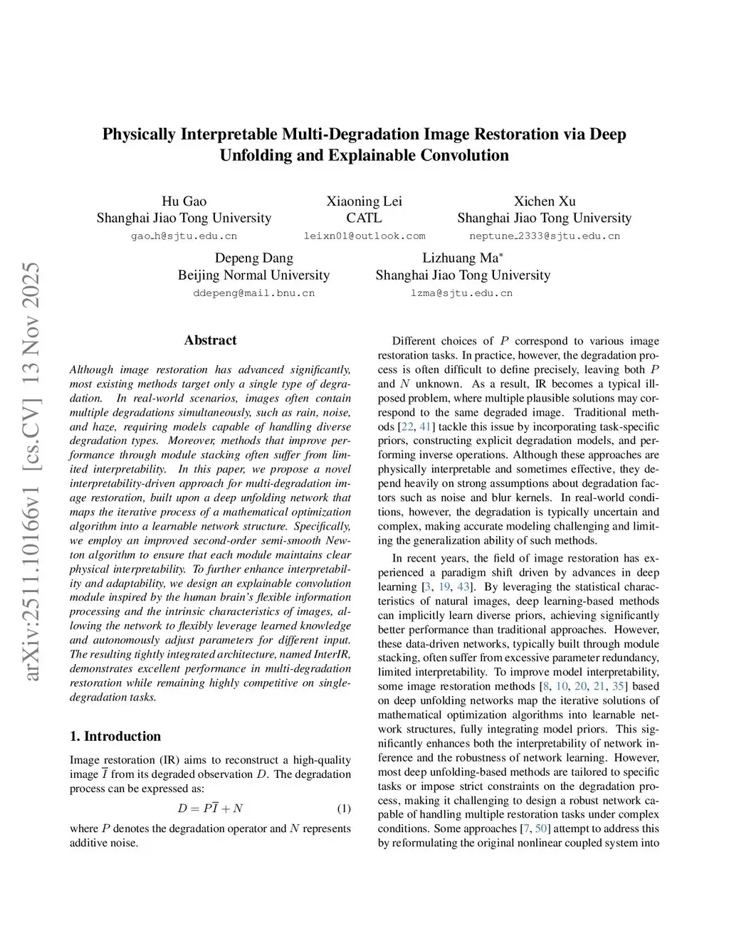 Physically Interpretable Multi-Degradation Image Restoration via Deep Unfolding and Explainable Convolution