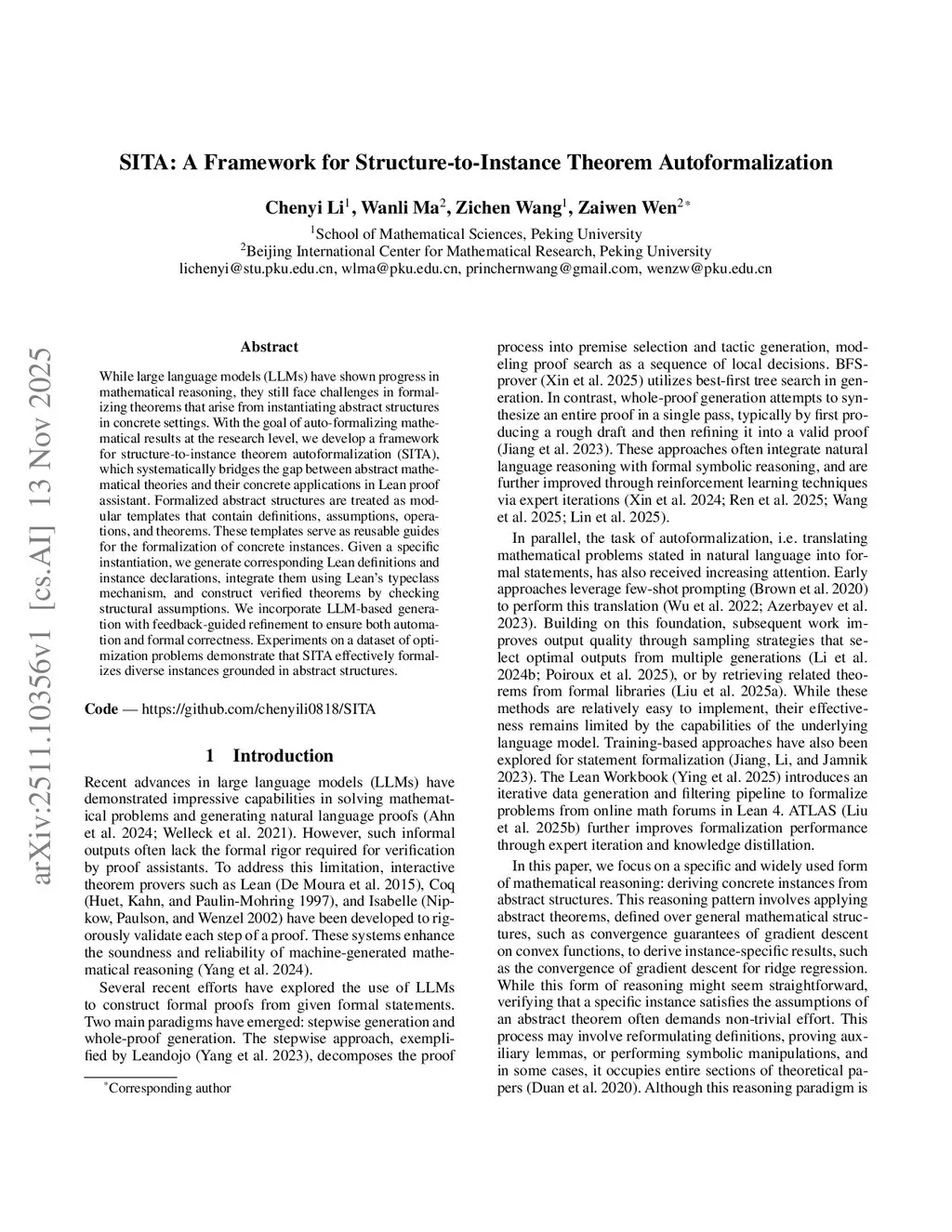 SITA: A Framework for Structure-to-Instance Theorem Autoformalization