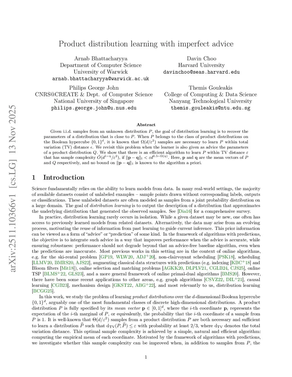 Given i.i.d.~samples from an unknown distribution , the goal of distribution learning is to recover the parameters of a distribution that is close to . When belongs to the class of product distributions on the Boolean hypercube , it is known that samples are necessary to learn within total variation (TV) distance . We revisit this problem when the learner is also given as advice the parameters of a product distribution . We show that there is an efficient algorithm to learn within TV distance that has sample complexity , if . Here, and are the mean vectors of and respectively, and no bound on is known to the algorithm a priori.