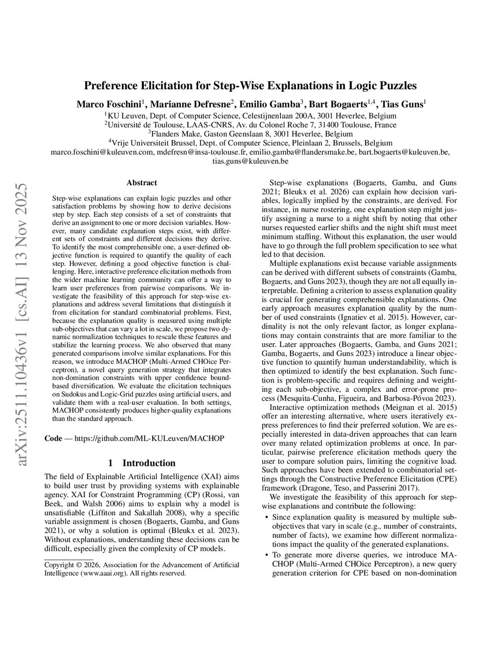 Step-wise explanations can explain logic puzzles and other satisfaction problems by showing how to derive decisions step by step. Each step consists of a set of constraints that derive an assignment to one or more decision variables. However, many candidate explanation steps exist, with different sets of constraints and different decisions they derive. To identify the most comprehensible one, a user-defined objective function is required to quantify the quality of each step. However, defining a good objective function is challenging. Here, interactive preference elicitation methods from the wider machine learning community can offer a way to learn user preferences from pairwise comparisons. We investigate the feasibility of this approach for step-wise explanations and address several limitations that distinguish it from elicitation for standard combinatorial problems. First, because the explanation quality is measured using multiple sub-objectives that can vary a lot in scale, we propose two dynamic normalization techniques to rescale these features and stabilize the learning process. We also observed that many generated comparisons involve similar explanations. For this reason, we introduce MACHOP (Multi-Armed CHOice Perceptron), a novel query generation strategy that integrates non-domination constraints with upper confidence bound-based diversification. We evaluate the elicitation techniques on Sudokus and Logic-Grid puzzles using artificial users, and validate them with a real-user evaluation. In both settings, MACHOP consistently produces higher-quality explanations than the standard approach.