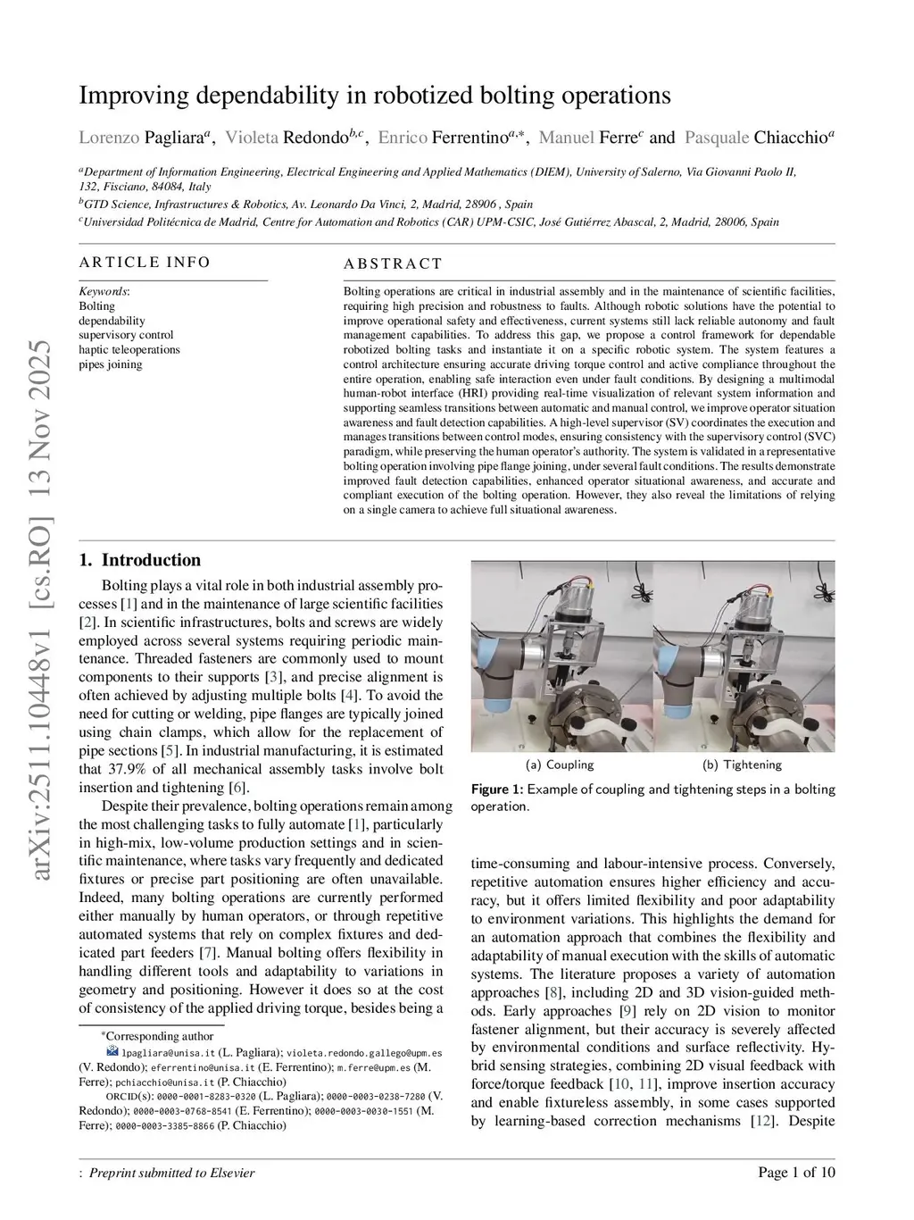 Bolting operations are critical in industrial assembly and in the maintenance of scientific facilities, requiring high precision and robustness to faults. Although robotic solutions have the potential to improve operational safety and effectiveness, current systems still lack reliable autonomy and fault management capabilities. To address this gap, we propose a control framework for dependable robotized bolting tasks and instantiate it on a specific robotic system. The system features a control architecture ensuring accurate driving torque control and active compliance throughout the entire operation, enabling safe interaction even under fault conditions. By designing a multimodal human-robot interface (HRI) providing real-time visualization of relevant system information and supporting seamless transitions between automatic and manual control, we improve operator situation awareness and fault detection capabilities. A high-level supervisor (SV) coordinates the execution and manages transitions between control modes, ensuring consistency with the supervisory control (SVC) paradigm, while preserving the human operator's authority. The system is validated in a representative bolting operation involving pipe flange joining, under several fault conditions. The results demonstrate improved fault detection capabilities, enhanced operator situational awareness, and accurate and compliant execution of the bolting operation. However, they also reveal the limitations of relying on a single camera to achieve full situational awareness.