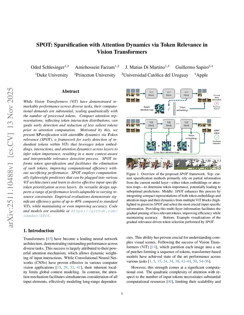SPOT: Sparsification with Attention Dynamics via Token Relevance in Vision Transformers