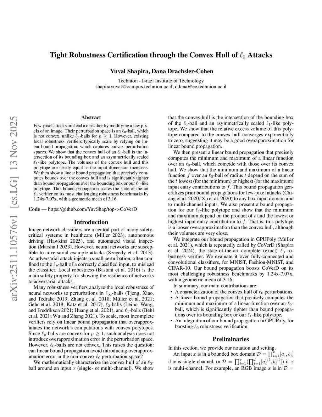 Few-pixel attacks mislead a classifier by modifying a few pixels of an image. Their perturbation space is an -ball, which is not convex, unlike -balls for . However, existing local robustness verifiers typically scale by relying on linear bound propagation, which captures convex perturbation spaces. We show that the convex hull of an -ball is the intersection of its bounding box and an asymmetrically scaled -like polytope. The volumes of the convex hull and this polytope are nearly equal as the input dimension increases. We then show a linear bound propagation that precisely computes bounds over the convex hull and is significantly tighter than bound propagations over the bounding box or our -like polytope. This bound propagation scales the state-of-the-art verifier on its most challenging robustness benchmarks by 1.24x-7.07x, with a geometric mean of 3.16.