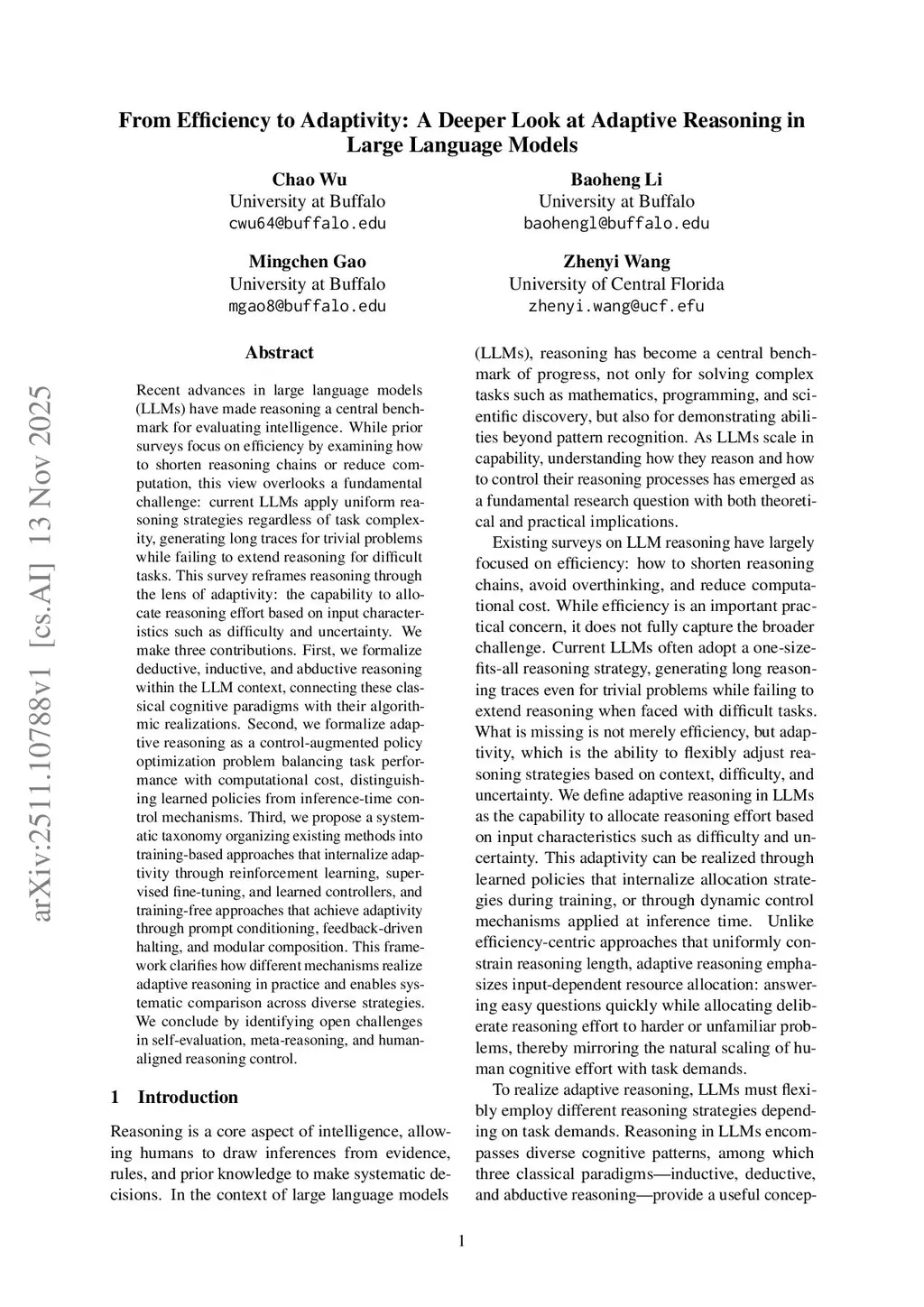 Recent advances in large language models (LLMs) have made reasoning a central benchmark for evaluating intelligence. While prior surveys focus on efficiency by examining how to shorten reasoning chains or reduce computation, this view overlooks a fundamental challenge: current LLMs apply uniform reasoning strategies regardless of task complexity, generating long traces for trivial problems while failing to extend reasoning for difficult tasks. This survey reframes reasoning through the lens of {adaptivity}: the capability to allocate reasoning effort based on input characteristics such as difficulty and uncertainty. We make three contributions. First, we formalize deductive, inductive, and abductive reasoning within the LLM context, connecting these classical cognitive paradigms with their algorithmic realizations. Second, we formalize adaptive reasoning as a control-augmented policy optimization problem balancing task performance with computational cost, distinguishing learned policies from inference-time control mechanisms. Third, we propose a systematic taxonomy organizing existing methods into training-based approaches that internalize adaptivity through reinforcement learning, supervised fine-tuning, and learned controllers, and training-free approaches that achieve adaptivity through prompt conditioning, feedback-driven halting, and modular composition. This framework clarifies how different mechanisms realize adaptive reasoning in practice and enables systematic comparison across diverse strategies. We conclude by identifying open challenges in self-evaluation, meta-reasoning, and human-aligned reasoning control.