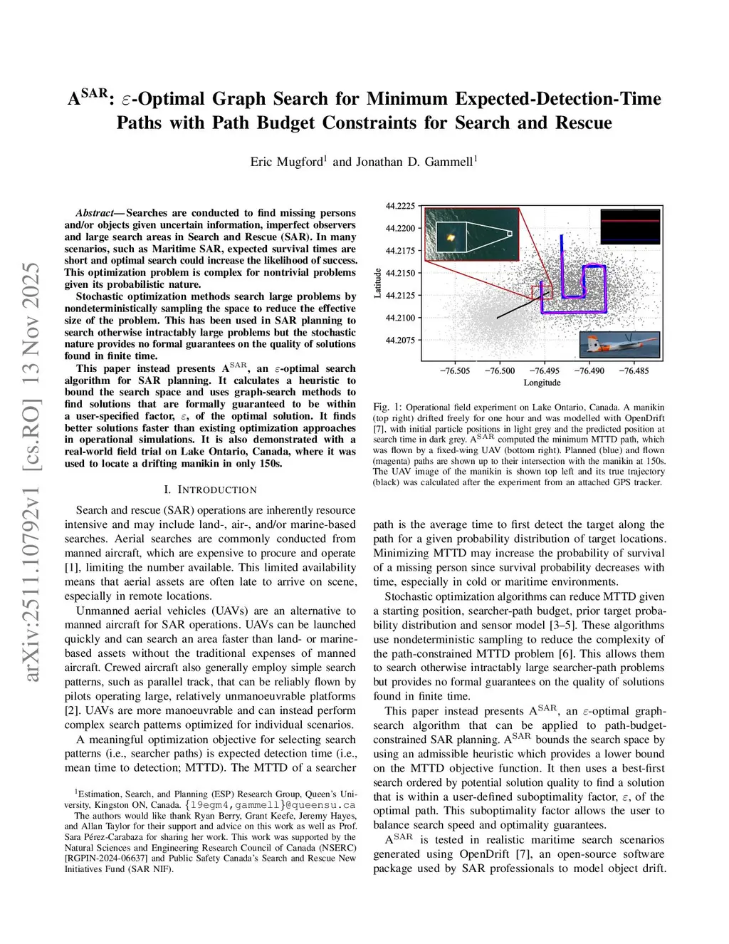 : -Optimal Graph Search for Minimum Expected-Detection-Time Paths with Path Budget Constraints for Search and Rescue (SAR)