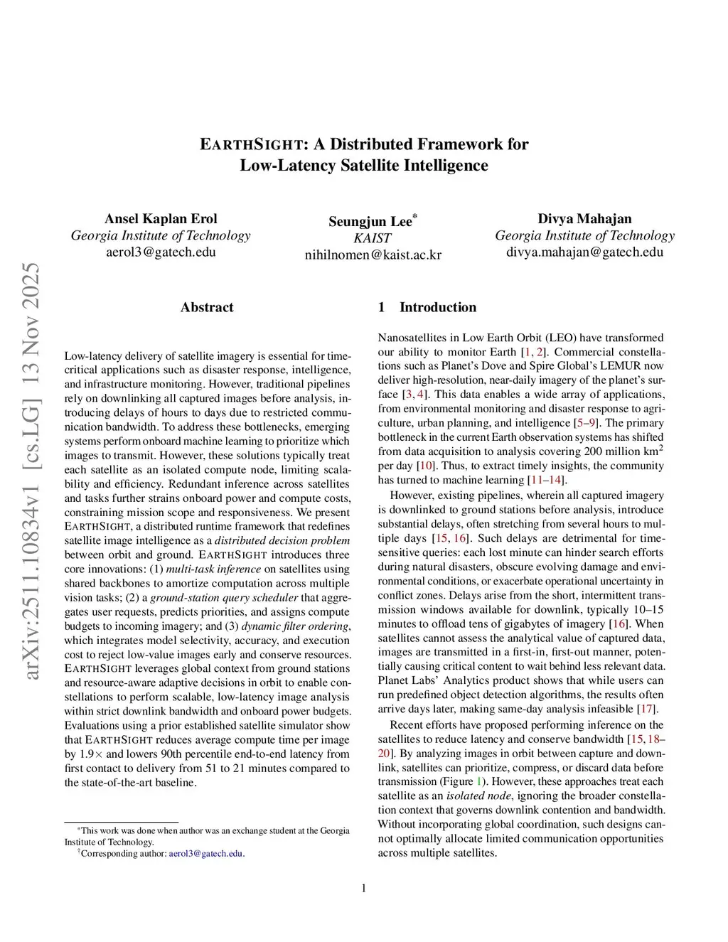 EarthSight: A Distributed Framework for Low-Latency Satellite Intelligence