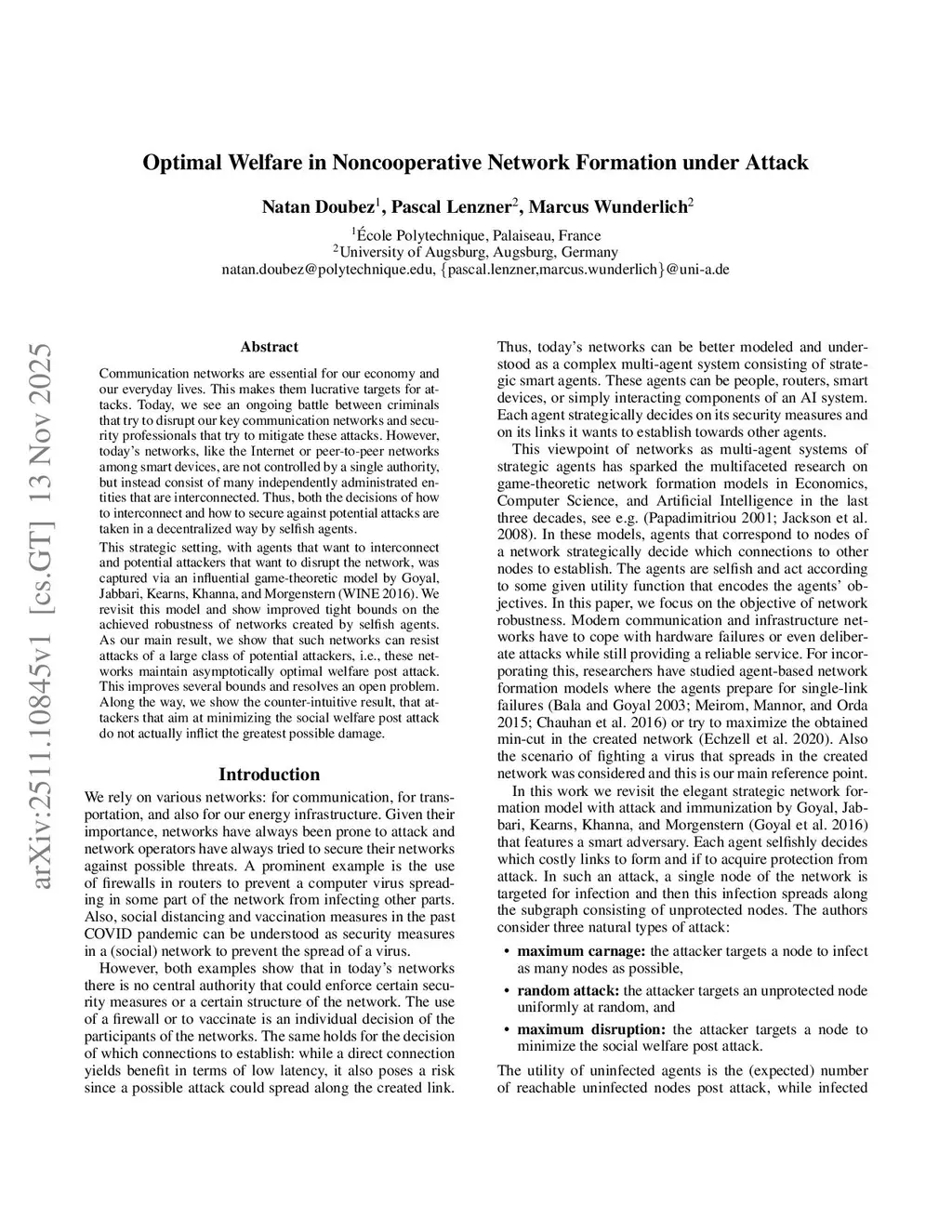 Communication networks are essential for our economy and our everyday lives. This makes them lucrative targets for attacks. Today, we see an ongoing battle between criminals that try to disrupt our key communication networks and security professionals that try to mitigate these attacks. However, today's networks, like the Internet or peer-to-peer networks among smart devices, are not controlled by a single authority, but instead consist of many independently administrated entities that are interconnected. Thus, both the decisions of how to interconnect and how to secure against potential attacks are taken in a decentralized way by selfish agents.This strategic setting, with agents that want to interconnect and potential attackers that want to disrupt the network, was captured via an influential game-theoretic model by Goyal, Jabbari, Kearns, Khanna, and Morgenstern (WINE 2016). We revisit this model and show improved tight bounds on the achieved robustness of networks created by selfish agents. As our main result, we show that such networks can resist attacks of a large class of potential attackers, i.e., these networks maintain asymptotically optimal welfare post attack. This improves several bounds and resolves an open problem. Along the way, we show the counter-intuitive result, that attackers that aim at minimizing the social welfare post attack do not actually inflict the greatest possible damage.