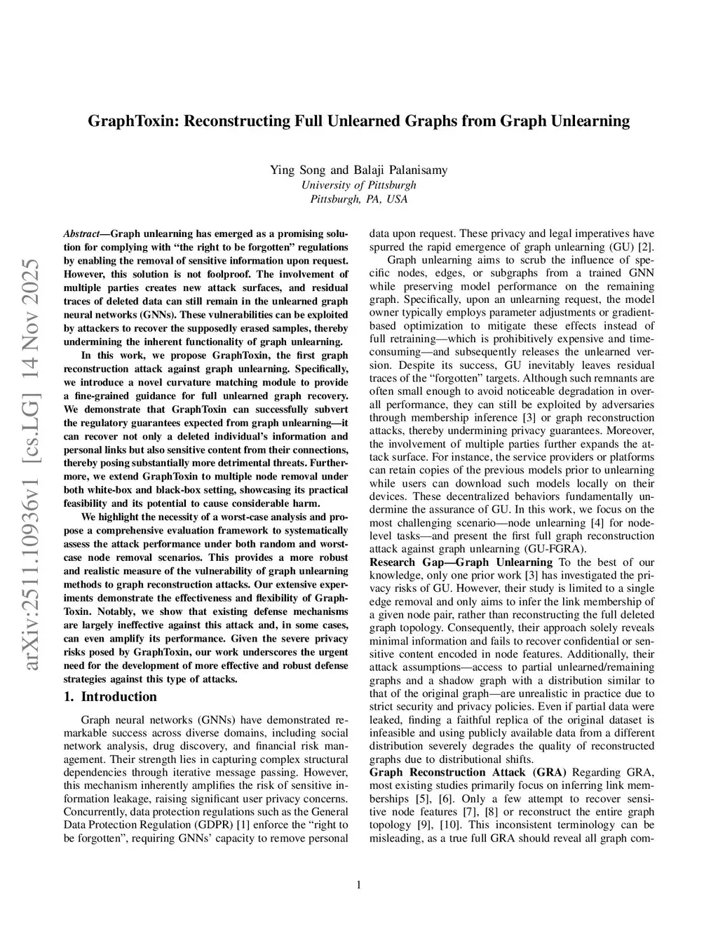 Graph unlearning has emerged as a promising solution to comply with "the right to be forgotten" regulations by enabling the removal of sensitive information upon request. However, this solution is not foolproof. The involvement of multiple parties creates new attack surfaces, and residual traces of deleted data can still remain in the unlearned graph neural networks (GNNs). These vulnerabilities can be exploited by attackers to recover the supposedly erased samples, thereby undermining the intended functionality of graph unlearning. In this work, we propose GraphToxin, the first full graph reconstruction attack against graph unlearning. Specifically, we introduce a novel curvature matching module to provide fine-grained guidance for unlearned graph recovery. We demonstrate that GraphToxin can successfully subvert the regulatory guarantees expected from graph unlearning, it can recover not only a deleted individual's information and personal links but also sensitive content from their connections, thereby posing substantially more detrimental threats. Furthermore, we extend GraphToxin to multiple-node removal under both white-box and black-box settings, showcasing its practical feasibility and potential to cause considerable harm. We highlight the necessity of worst-case analysis and propose a systematic evaluation framework to assess attack performance under both random and worst-case node removal scenarios. Our extensive experiments demonstrate the effectiveness and flexibility of GraphToxin. Notably, existing defense mechanisms are largely ineffective against this attack or even amplify its performance in some cases. Given the severe privacy risks posed by GraphToxin, our work underscores the urgent need for more effective and robust defenses.