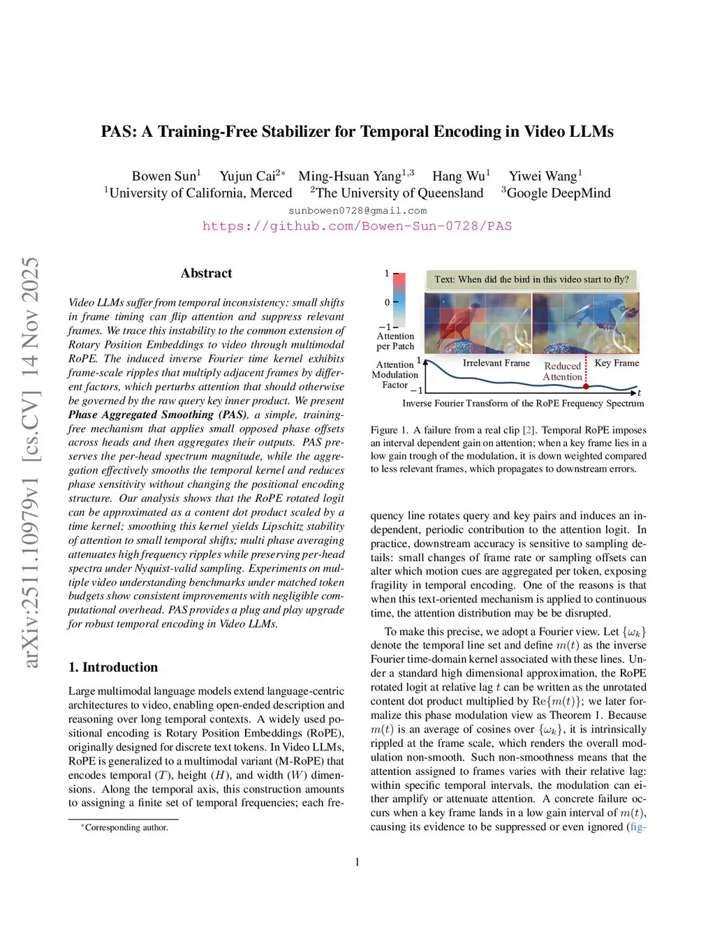 PAS: A Training-Free Stabilizer for Temporal Encoding in Video LLMs