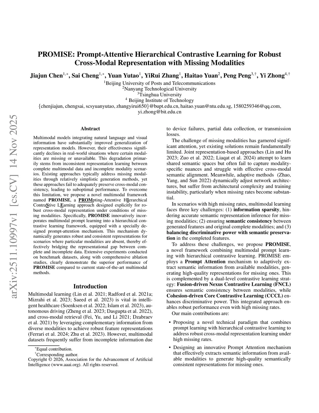 PROMISE: Prompt-Attentive Hierarchical Contrastive Learning for Robust Cross-Modal Representation with Missing Modalities