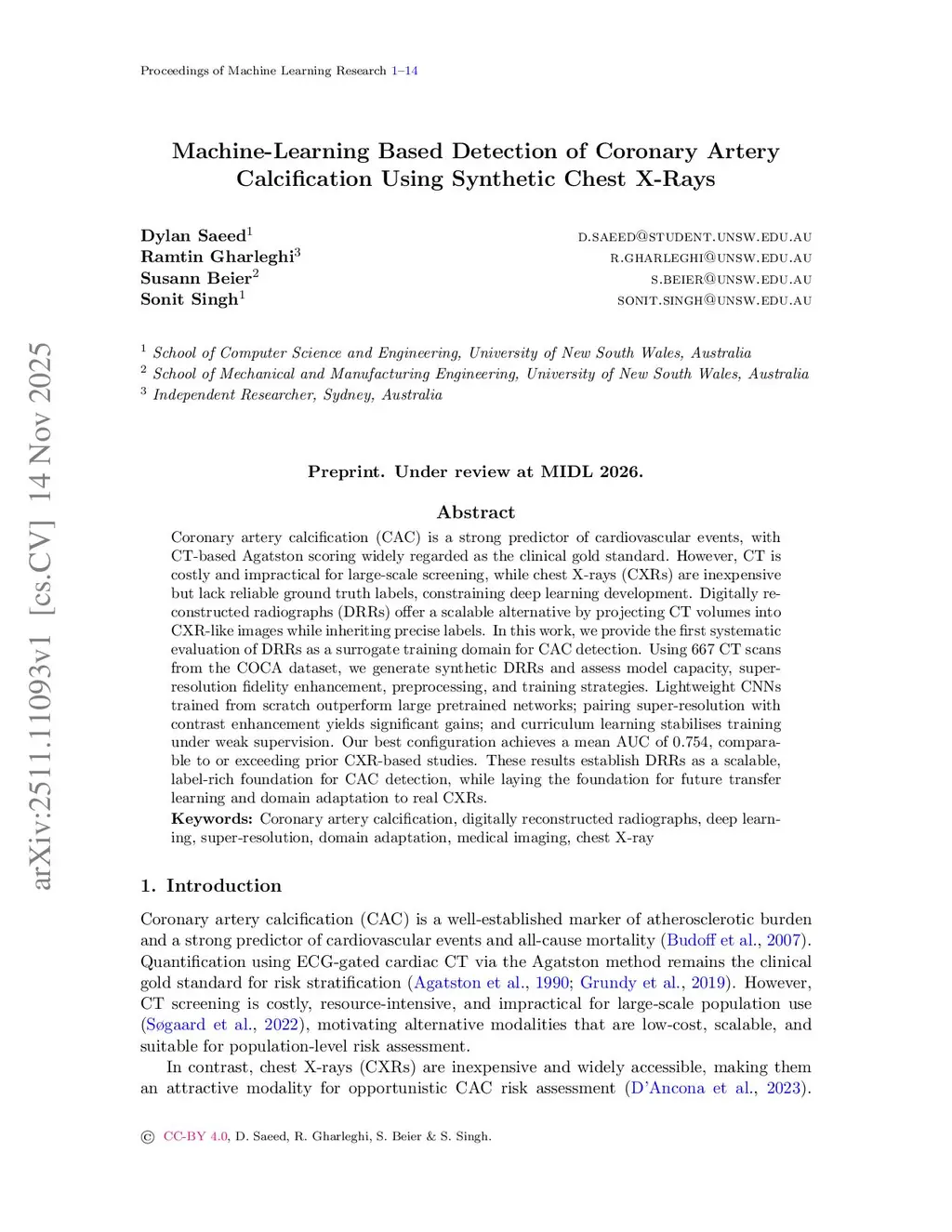 Machine-Learning Based Detection of Coronary Artery Calcification Using Synthetic Chest X-Rays