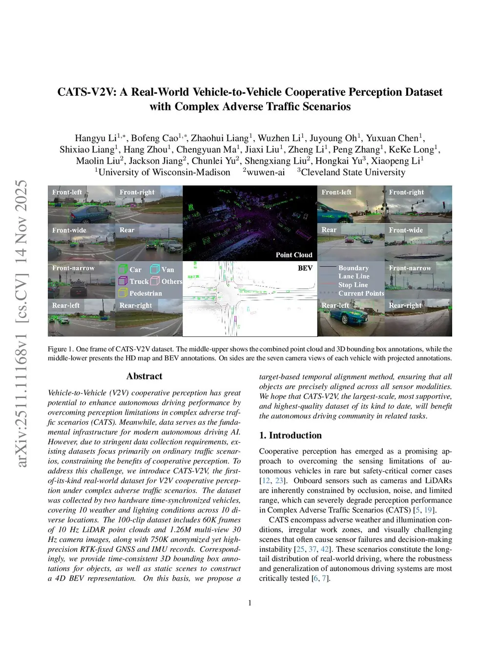 CATS-V2V: A Real-World Vehicle-to-Vehicle Cooperative Perception Dataset with Complex Adverse Traffic Scenarios