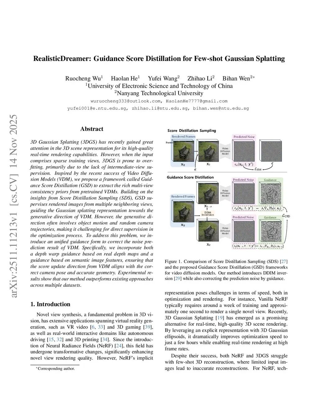 RealisticDreamer: Guidance Score Distillation for Few-shot Gaussian Splatting