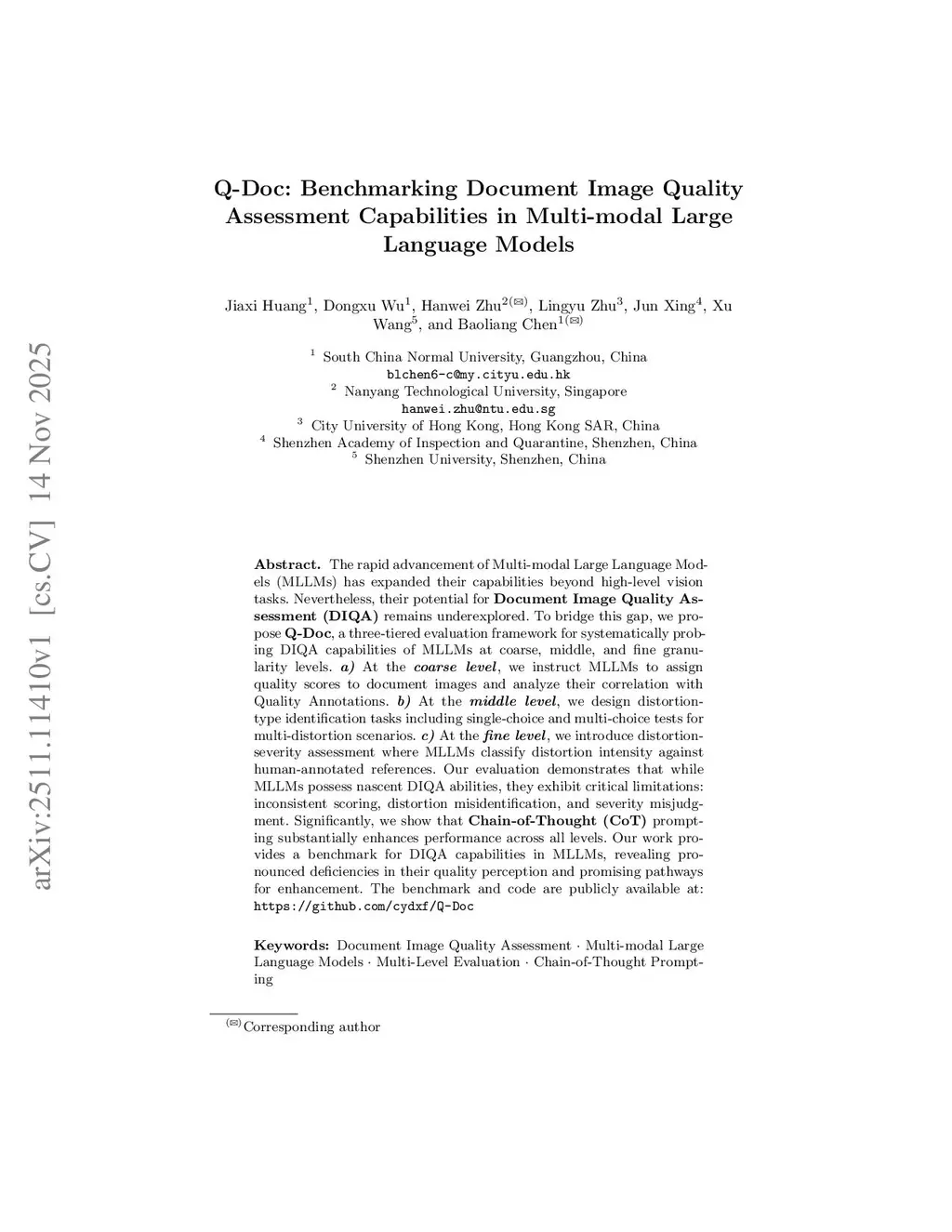 Q-Doc: Benchmarking Document Image Quality Assessment Capabilities in Multi-modal Large Language Models