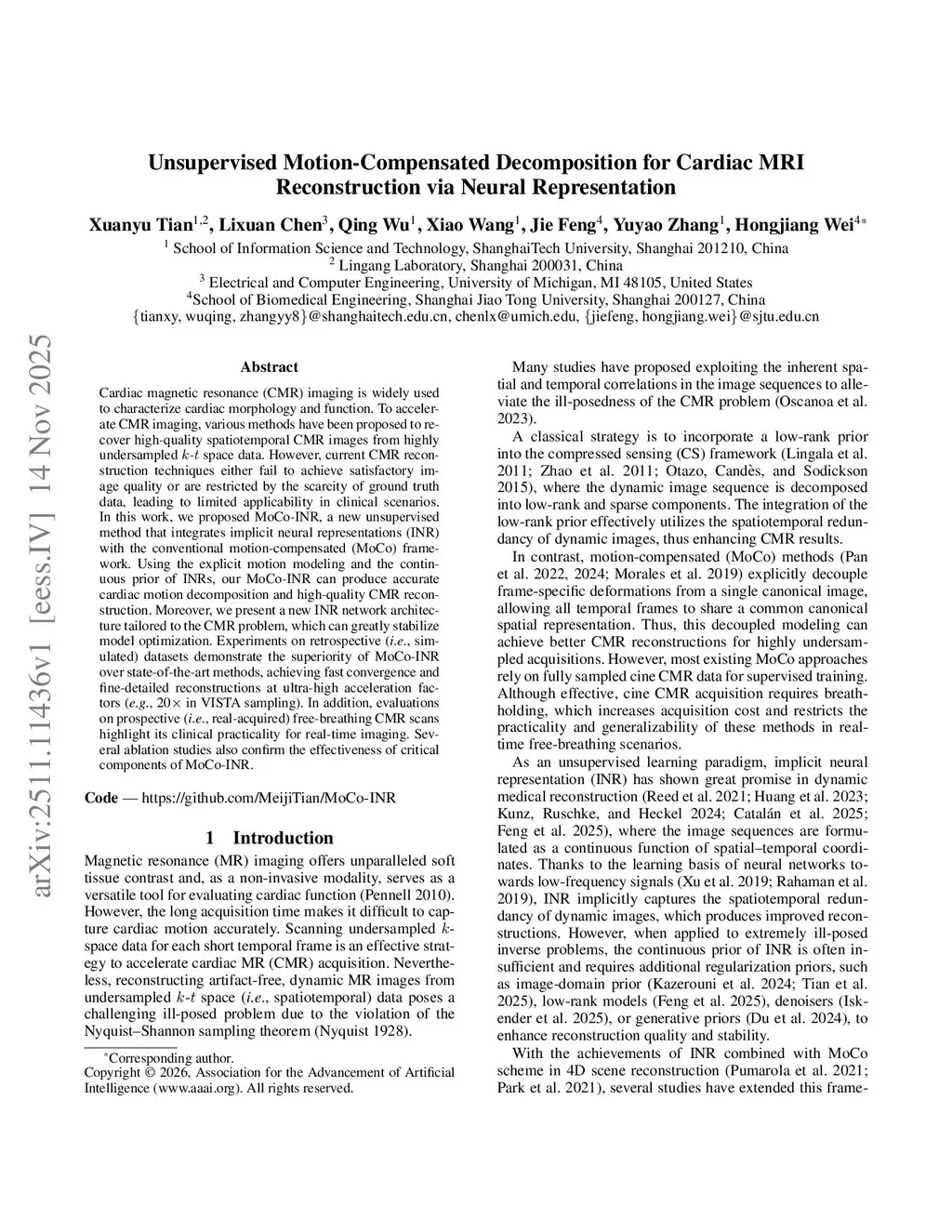 Unsupervised Motion-Compensated Decomposition for Cardiac MRI Reconstruction via Neural Representation