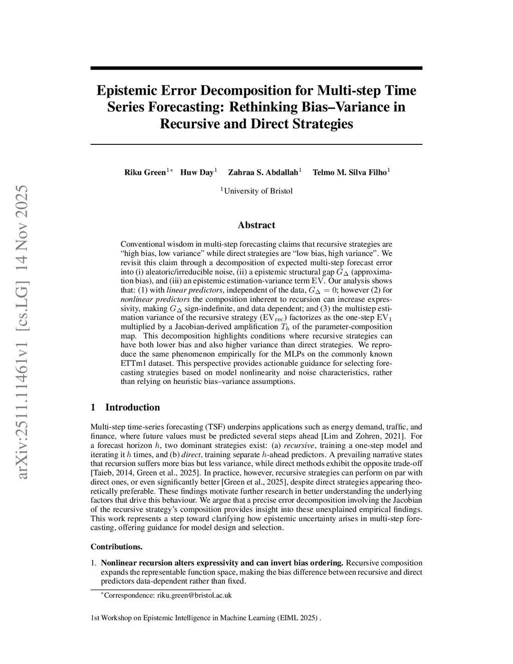 Epistemic Error Decomposition for Multi-step Time Series Forecasting: Rethinking Bias-Variance in Recursive and Direct Strategies