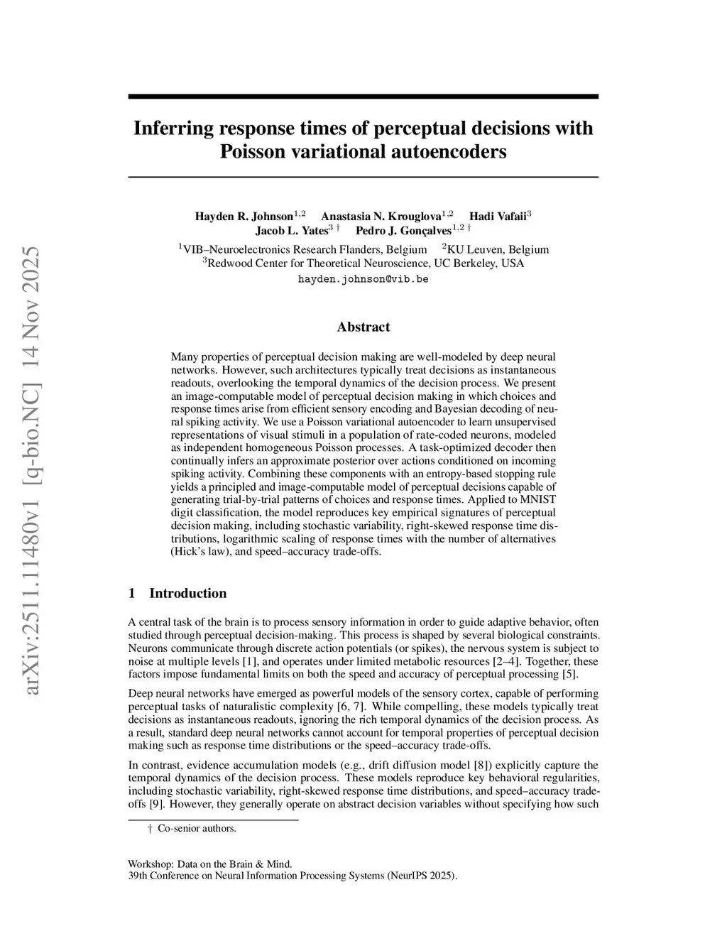 Inferring response times of perceptual decisions with Poisson variational autoencoders