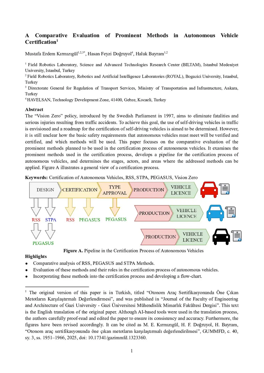 The "Vision Zero" policy, introduced by the Swedish Parliament in 1997, aims to eliminate fatalities and serious injuries resulting from traffic accidents. To achieve this goal, the use of self-driving vehicles in traffic is envisioned and a roadmap for the certification of self-driving vehicles is aimed to be determined. However, it is still unclear how the basic safety requirements that autonomous vehicles must meet will be verified and certified, and which methods will be used. This paper focuses on the comparative evaluation of the prominent methods planned to be used in the certification process of autonomous vehicles. It examines the prominent methods used in the certification process, develops a pipeline for the certification process of autonomous vehicles, and determines the stages, actors, and areas where the addressed methods can be applied.