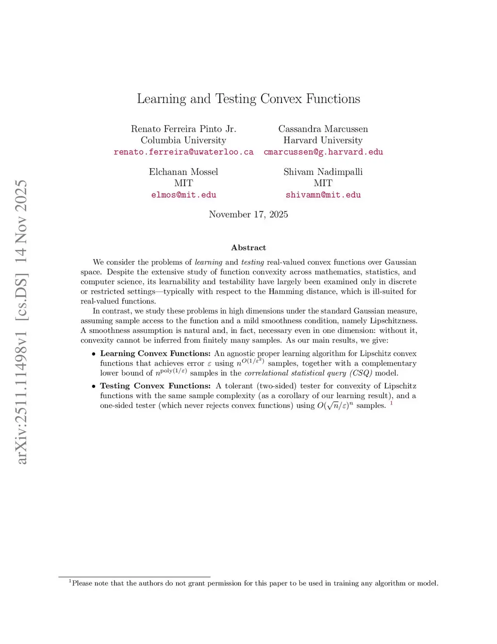 We consider the problems of \emph{learning} and \emph{testing} real-valued convex functions over Gaussian space. Despite the extensive study of function convexity across mathematics, statistics, and computer science, its learnability and testability have largely been examined only in discrete or restricted settings -- typically with respect to the Hamming distance, which is ill-suited for real-valued functions.In contrast, we study these problems in high dimensions under the standard Gaussian measure, assuming sample access to the function and a mild smoothness condition, namely Lipschitzness. A smoothness assumption is natural and, in fact, necessary even in one dimension: without it, convexity cannot be inferred from finitely many samples. As our main results, we give:- Learning Convex Functions: An agnostic proper learning algorithm for Lipschitz convex functions that achieves error using samples, together with a complementary lower bound of samples in the \emph{correlational statistical query (CSQ)} model.- Testing Convex Functions: A tolerant (two-sided) tester for convexity of Lipschitz functions with the same sample complexity (as a corollary of our learning result), and a one-sided tester (which never rejects convex functions) using samples.