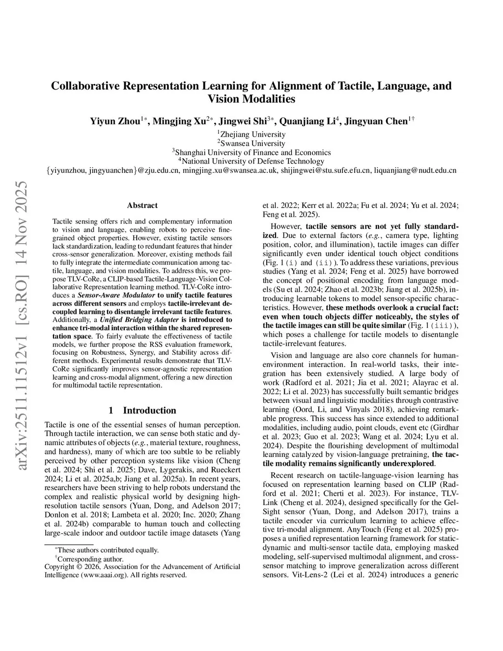 Collaborative Representation Learning for Alignment of Tactile, Language, and Vision Modalities