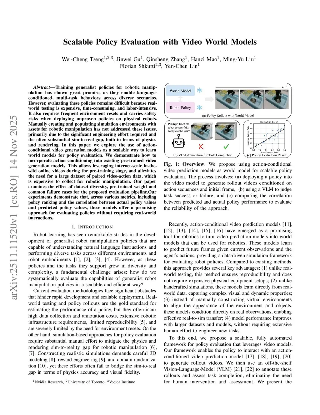 Scalable Policy Evaluation with Video World Models
