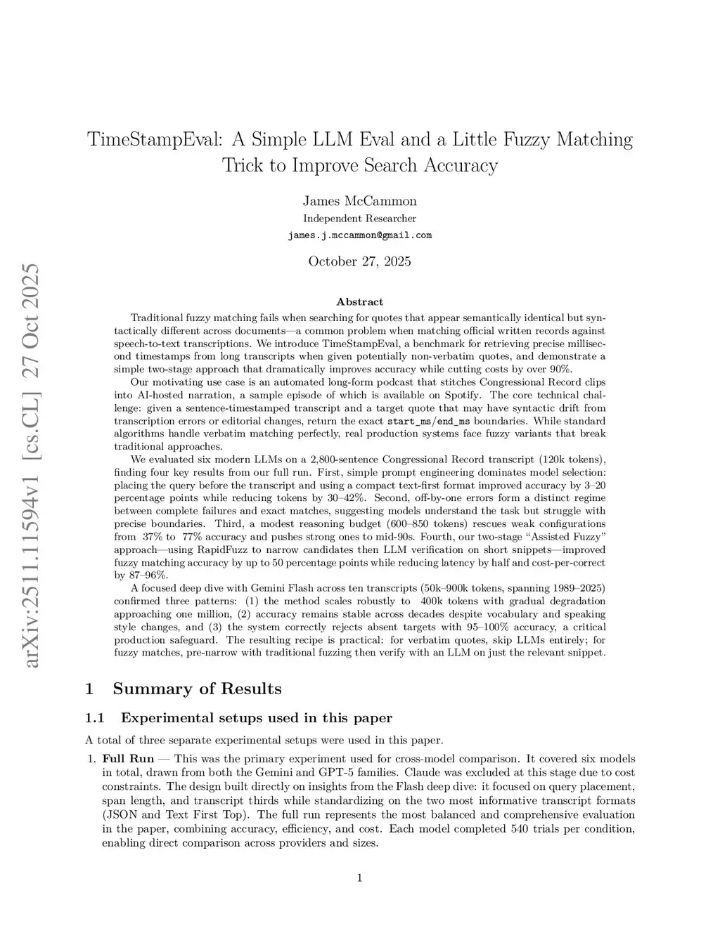TimeStampEval: A Simple LLM Eval and a Little Fuzzy Matching Trick to Improve Search Accuracy