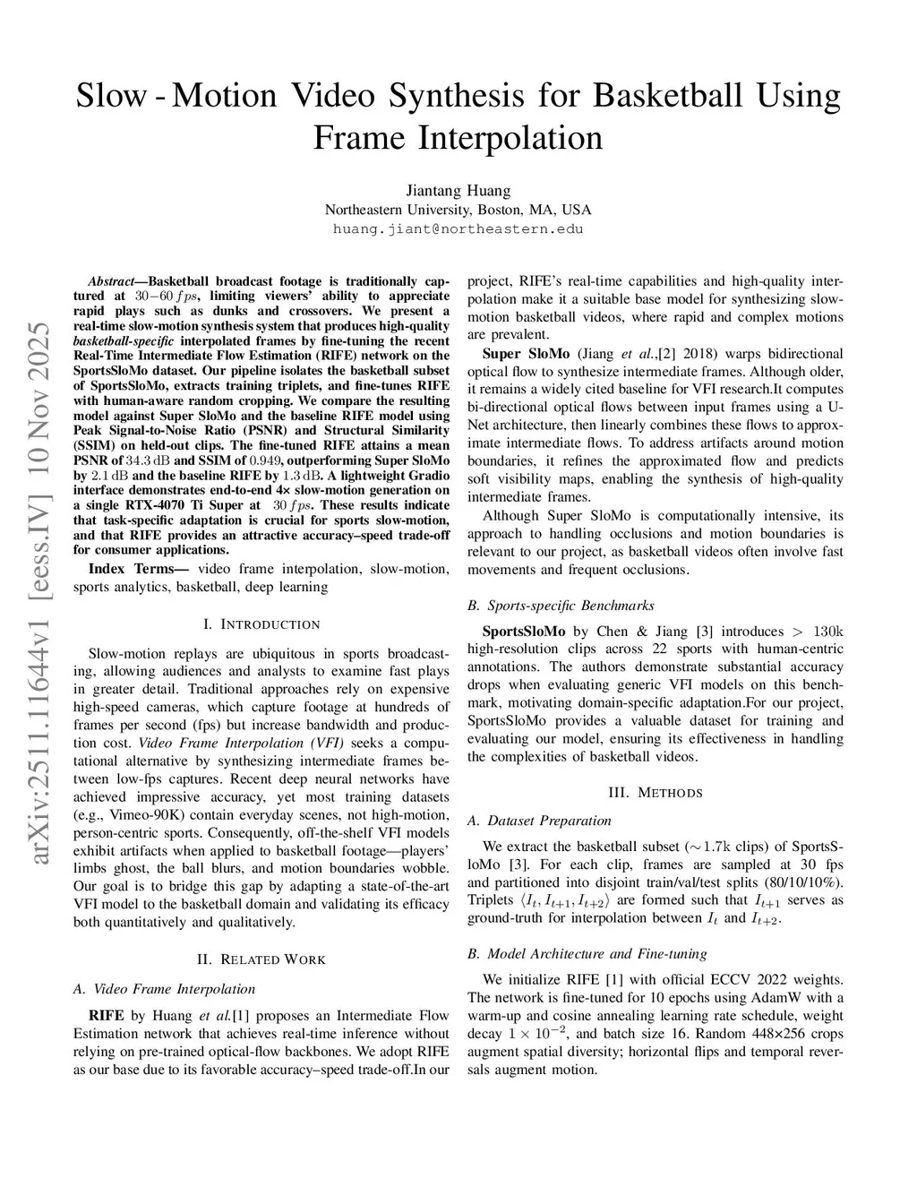 Slow - Motion Video Synthesis for Basketball Using Frame Interpolation