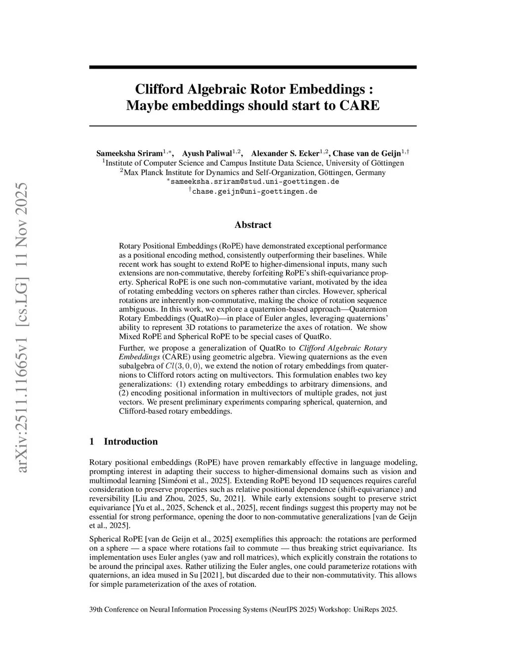 Clifford Algebraic Rotor Embeddings : Maybe embeddings should start to CARE