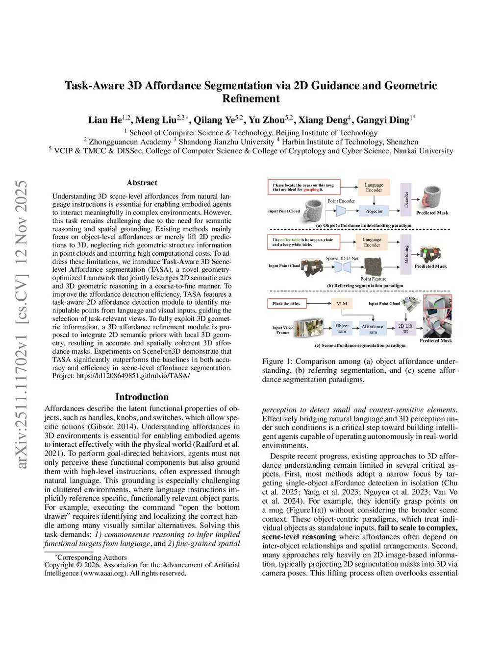 Task-Aware 3D Affordance Segmentation via 2D Guidance and Geometric Refinement