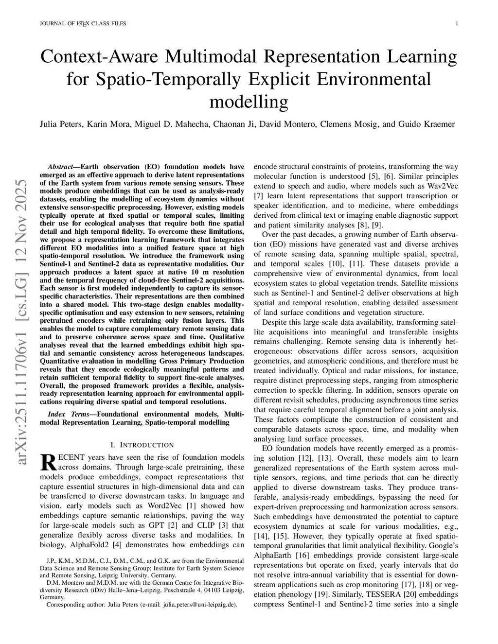 Context-Aware Multimodal Representation Learning for Spatio-Temporally Explicit Environmental Modelling