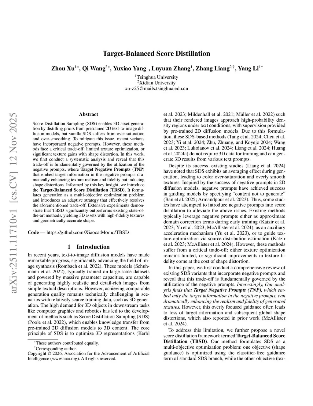 Score Distillation Sampling (SDS) enables 3D asset generation by distilling priors from pretrained 2D text-to-image diffusion models, but vanilla SDS suffers from over-saturation and over-smoothing. To mitigate this issue, recent variants have incorporated negative prompts. However, these methods face a critical trade-off: limited texture optimization, or significant texture gains with shape distortion. In this work, we first conduct a systematic analysis and reveal that this trade-off is fundamentally governed by the utilization of the negative prompts, where Target Negative Prompts (TNP) that embed target information in the negative prompts dramatically enhancing texture realism and fidelity but inducing shape distortions. Informed by this key insight, we introduce the Target-Balanced Score Distillation (TBSD). It formulates generation as a multi-objective optimization problem and introduces an adaptive strategy that effectively resolves the aforementioned trade-off. Extensive experiments demonstrate that TBSD significantly outperforms existing state-of-the-art methods, yielding 3D assets with high-fidelity textures and geometrically accurate shape.