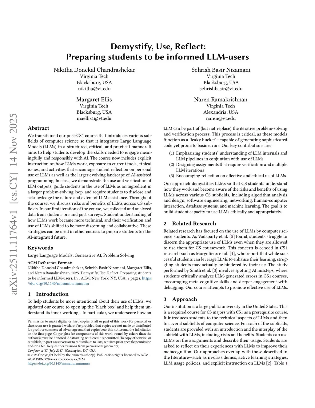 Demystify, Use, Reflect: Preparing students to be informed LLM-users