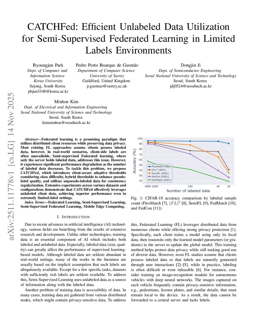 Federated learning is a promising paradigm that utilizes distributed client resources while preserving data privacy. Most existing FL approaches assume clients possess labeled data, however, in real-world scenarios, client-side labels are often unavailable. Semi-supervised Federated learning, where only the server holds labeled data, addresses this issue. However, it experiences significant performance degradation as the number of labeled data decreases. To tackle this problem, we propose \textit{CATCHFed}, which introduces client-aware adaptive thresholds considering class difficulty, hybrid thresholds to enhance pseudo-label quality, and utilizes unpseudo-labeled data for consistency regularization. Extensive experiments across various datasets and configurations demonstrate that CATCHFed effectively leverages unlabeled client data, achieving superior performance even in extremely limited-label settings.