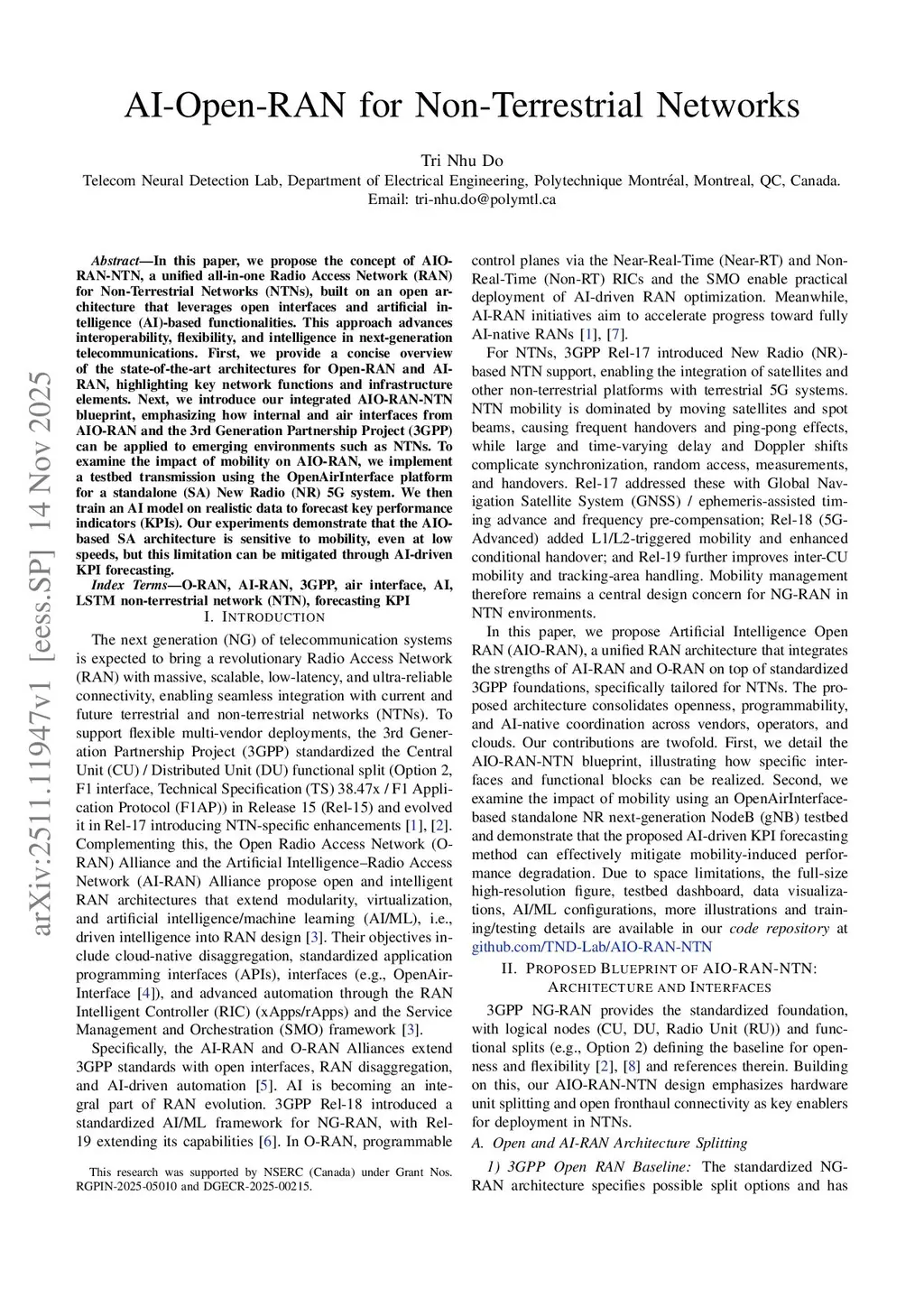 In this paper, we propose the concept of AIO-RAN-NTN, a unified all-in-one Radio Access Network (RAN) for Non-Terrestrial Networks (NTNs), built on an open architecture that leverages open interfaces and artificial intelligence (AI)-based functionalities. This approach advances interoperability, flexibility, and intelligence in next-generation telecommunications. First, we provide a concise overview of the state-of-the-art architectures for Open-RAN and AI-RAN, highlighting key network functions and infrastructure elements. Next, we introduce our integrated AIO-RAN-NTN blueprint, emphasizing how internal and air interfaces from AIO-RAN and the 3rd Generation Partnership Project (3GPP) can be applied to emerging environments such as NTNs. To examine the impact of mobility on AIO-RAN, we implement a testbed transmission using the OpenAirInterface platform for a standalone (SA) New Radio (NR) 5G system. We then train an AI model on realistic data to forecast key performance indicators (KPIs). Our experiments demonstrate that the AIO-based SA architecture is sensitive to mobility, even at low speeds, but this limitation can be mitigated through AI-driven KPI forecasting.