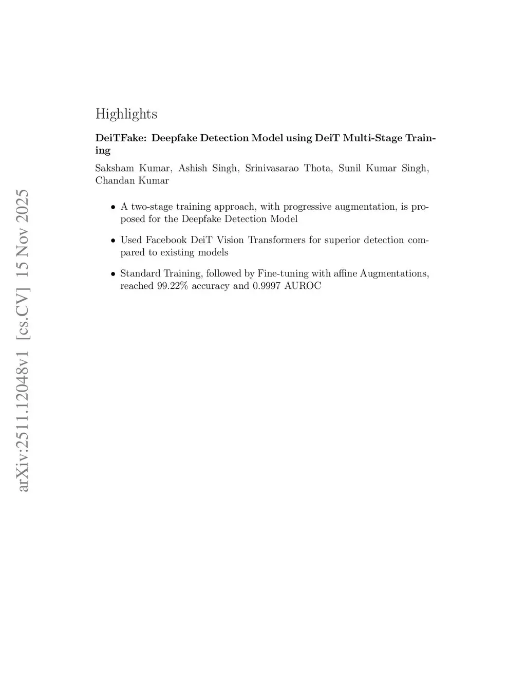 DeiTFake: Deepfake Detection Model using DeiT Multi-Stage Training