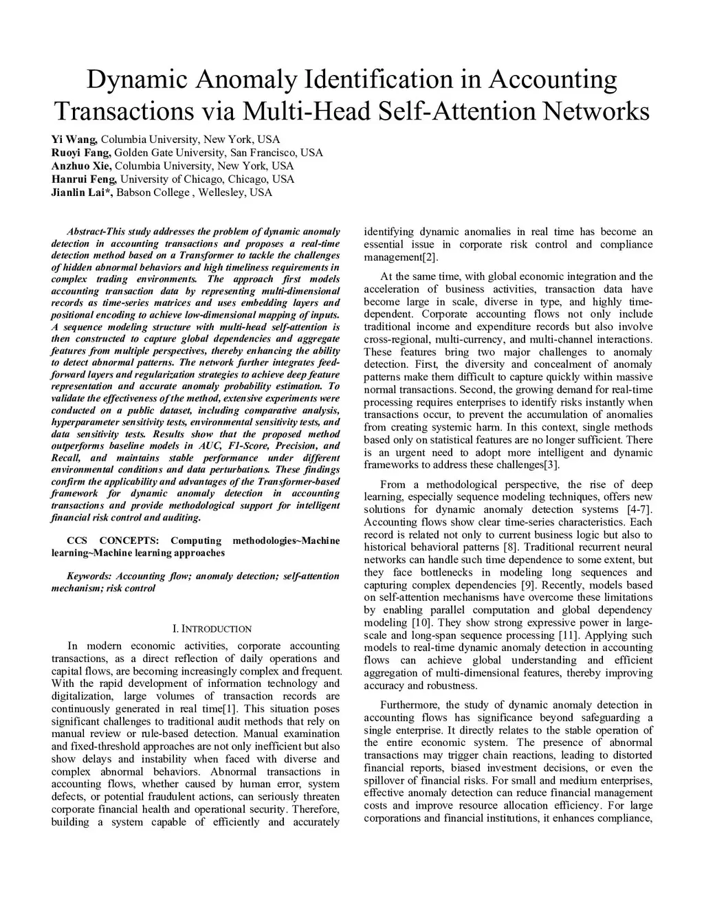 Dynamic Anomaly Identification in Accounting Transactions via Multi-Head Self-Attention Networks