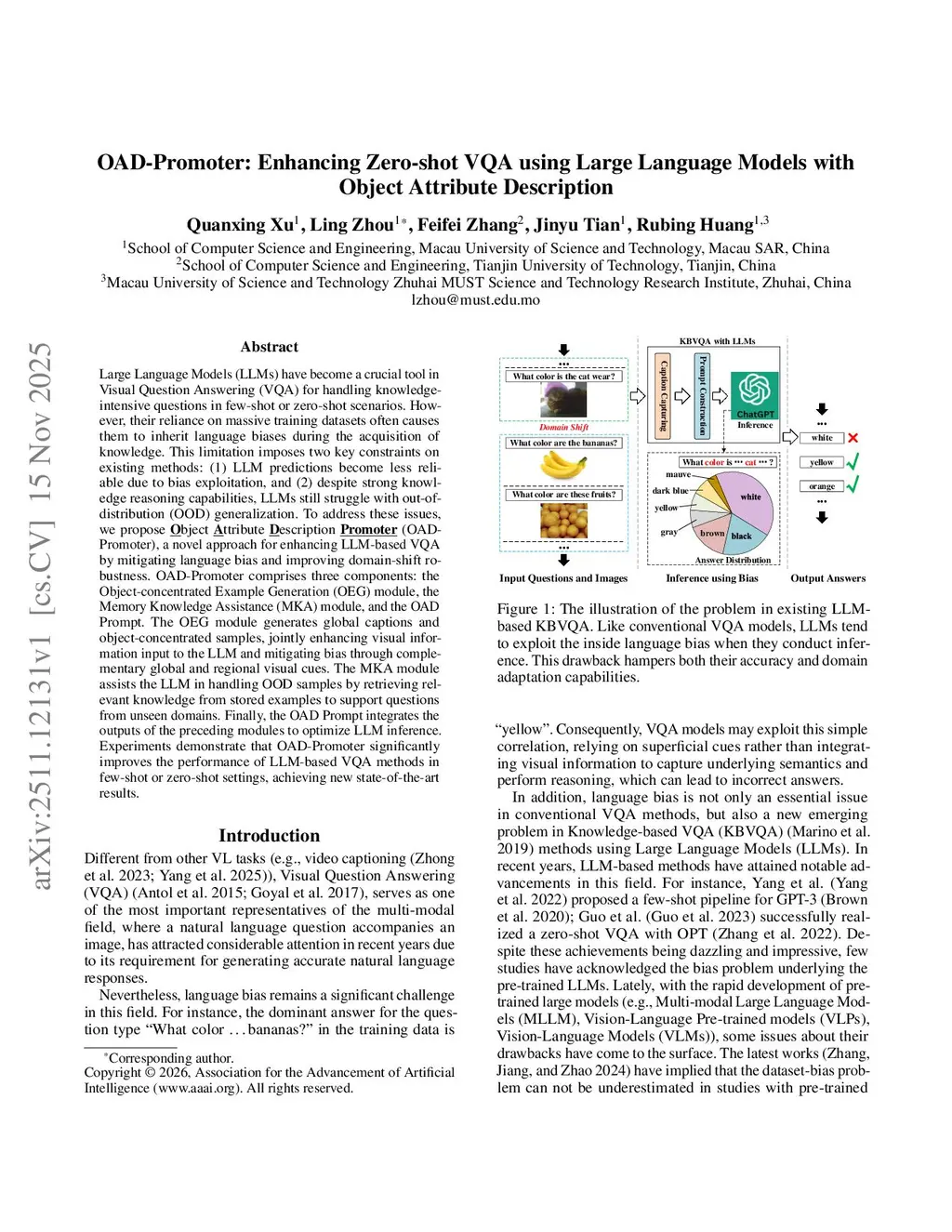 OAD-Promoter: Enhancing Zero-shot VQA using Large Language Models with Object Attribute Description