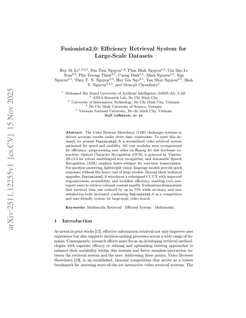 Fusionista2.0: Efficiency Retrieval System for Large-Scale Datasets