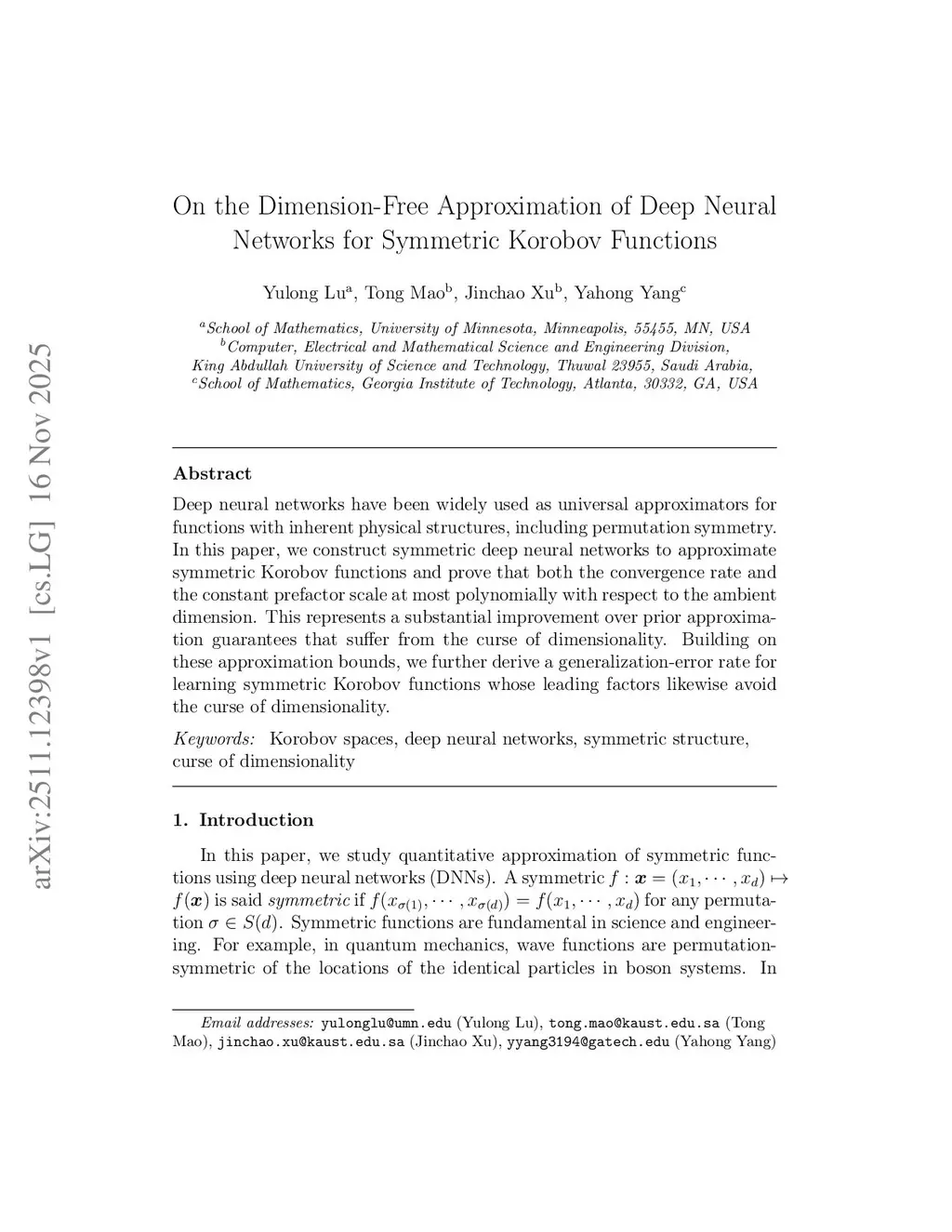 Deep neural networks have been widely used as universal approximators for functions with inherent physical structures, including permutation symmetry. In this paper, we construct symmetric deep neural networks to approximate symmetric Korobov functions and prove that both the convergence rate and the constant prefactor scale at most polynomially with respect to the ambient dimension. This represents a substantial improvement over prior approximation guarantees that suffer from the curse of dimensionality. Building on these approximation bounds, we further derive a generalization-error rate for learning symmetric Korobov functions whose leading factors likewise avoid the curse of dimensionality.