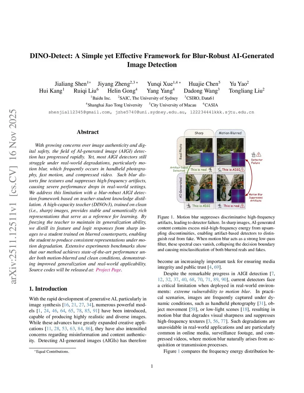 DINO-Detect: A Simple yet Effective Framework for Blur-Robust AI-Generated Image Detection