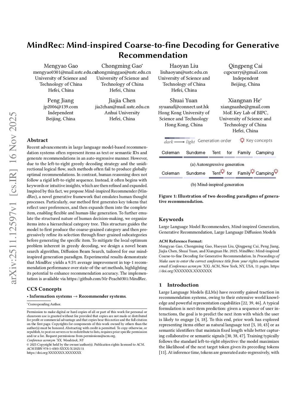 MindRec: A Diffusion-driven Coarse-to-Fine Paradigm for Generative Recommendation