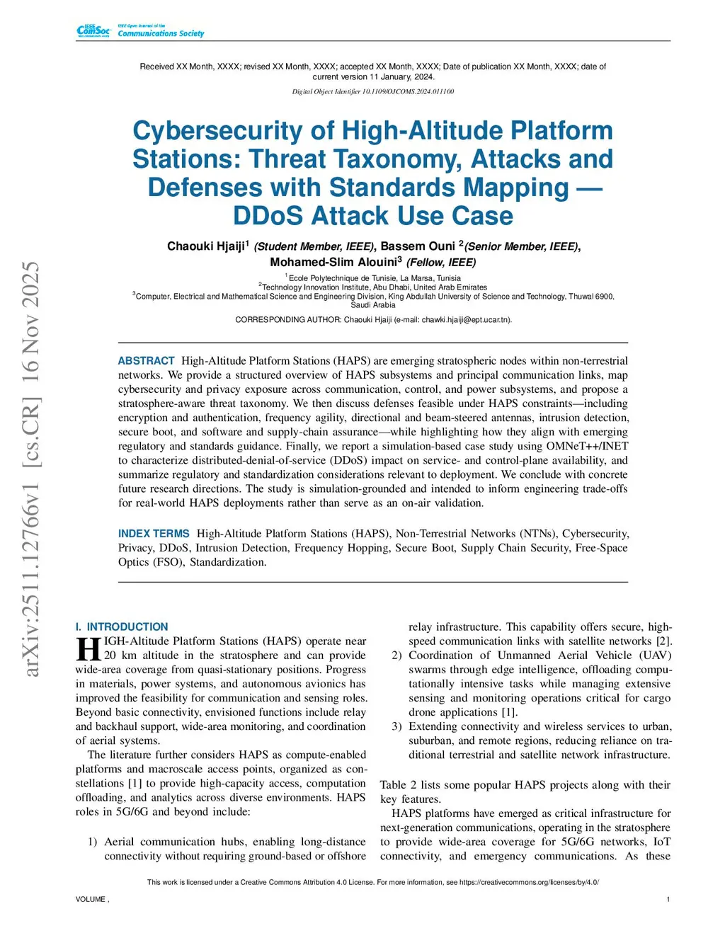 Cybersecurity of High-Altitude Platform Stations: Threat Taxonomy, Attacks and Defenses with Standards Mapping - DDoS Attack Use Case