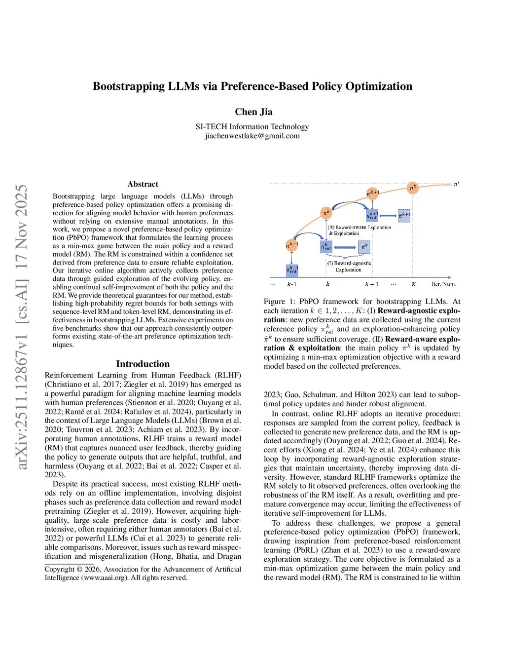 Bootstrapping LLMs via Preference-Based Policy Optimization