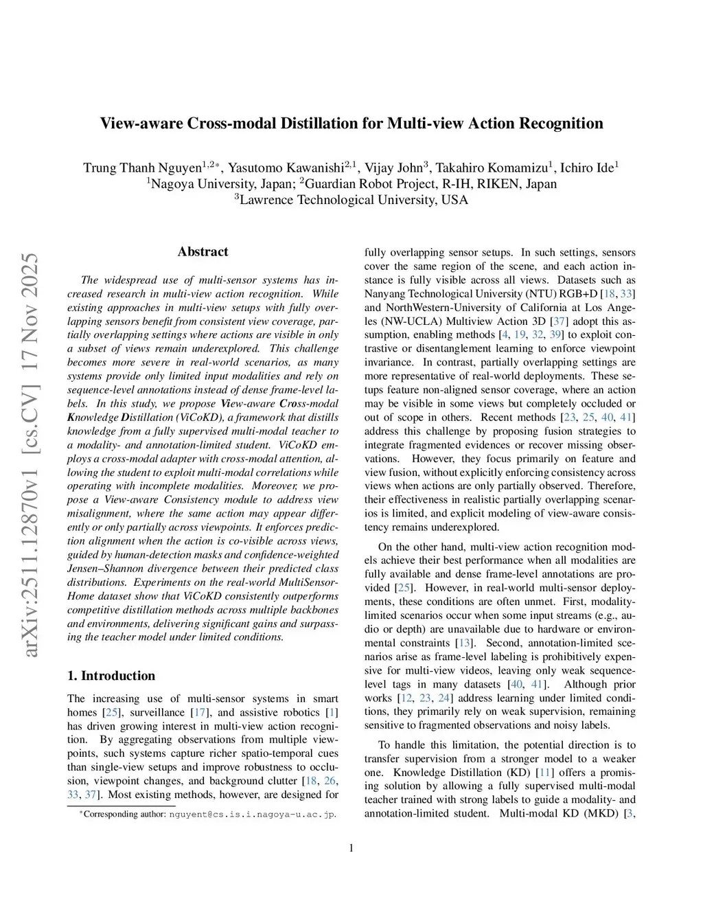 View-aware Cross-modal Distillation for Multi-view Action Recognition