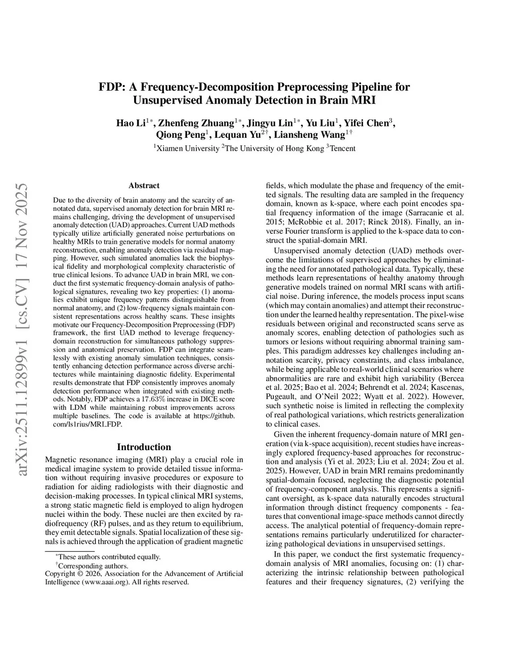 FDP: A Frequency-Decomposition Preprocessing Pipeline for Unsupervised Anomaly Detection in Brain MRI
