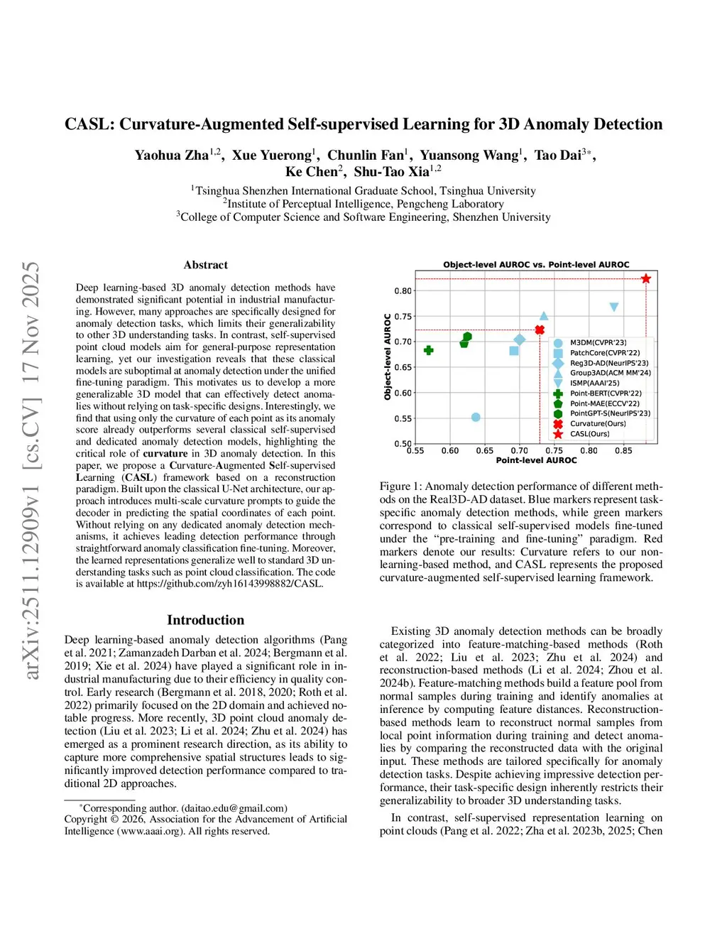 CASL: Curvature-Augmented Self-supervised Learning for 3D Anomaly Detection