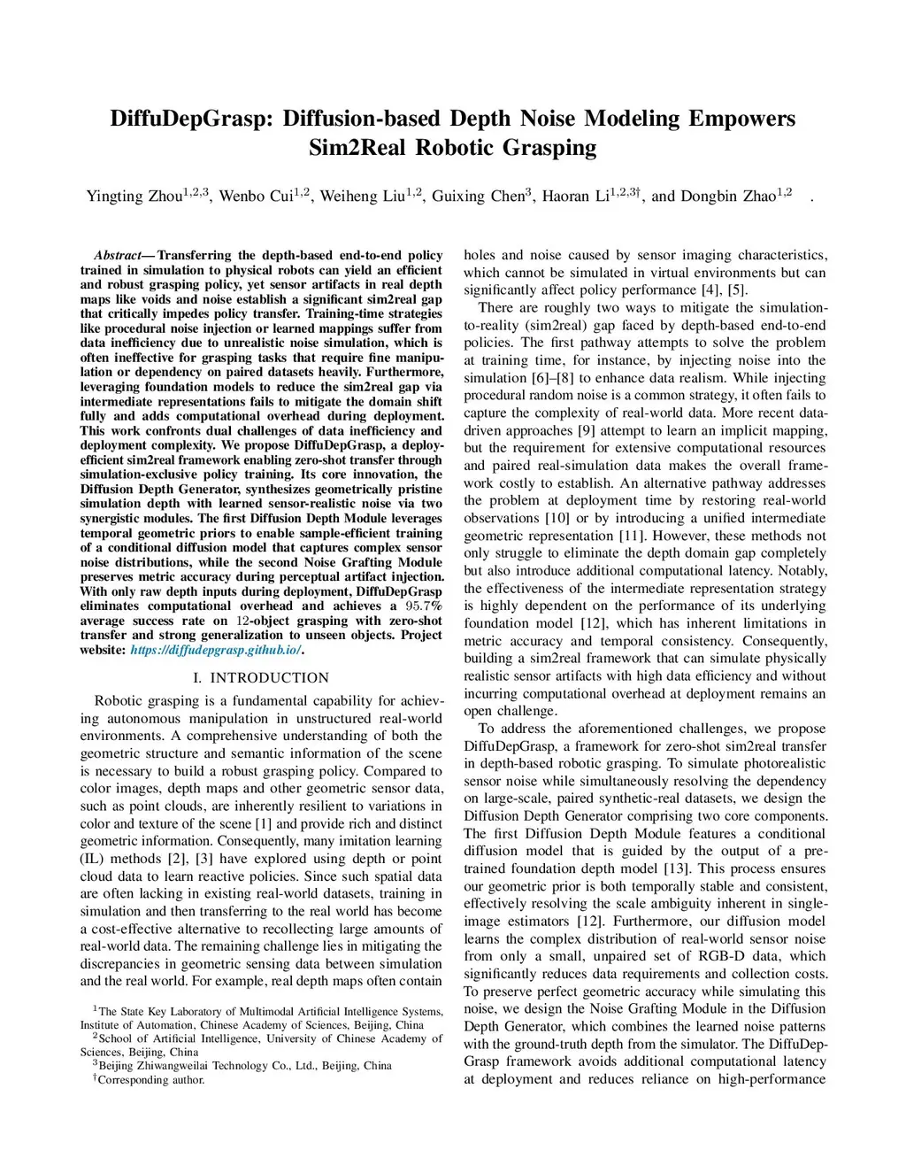 DiffuDepGrasp: Diffusion-based Depth Noise Modeling Empowers Sim2Real Robotic Grasping